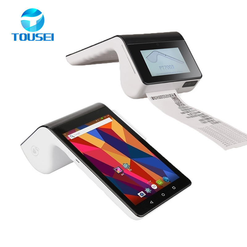 Terminal de point de vente mobile: Android 7+1G+8G+7" écran tactile principal + écran 3,5" + imprimante 58 mm + carte NFC + IC + caméra + 4G + WIFI + BT; MSR, scanner, 2G + 16G sont optionnels.